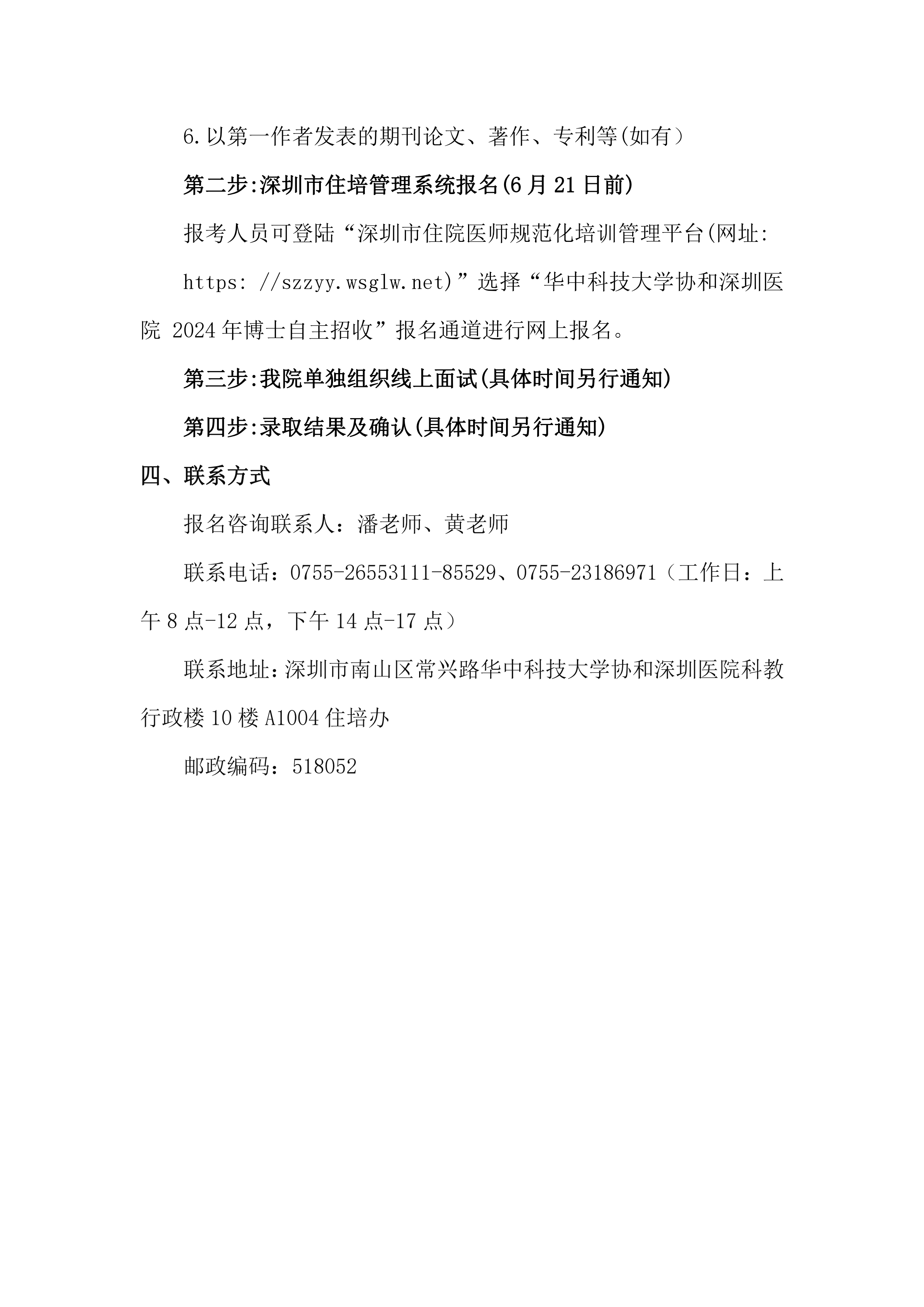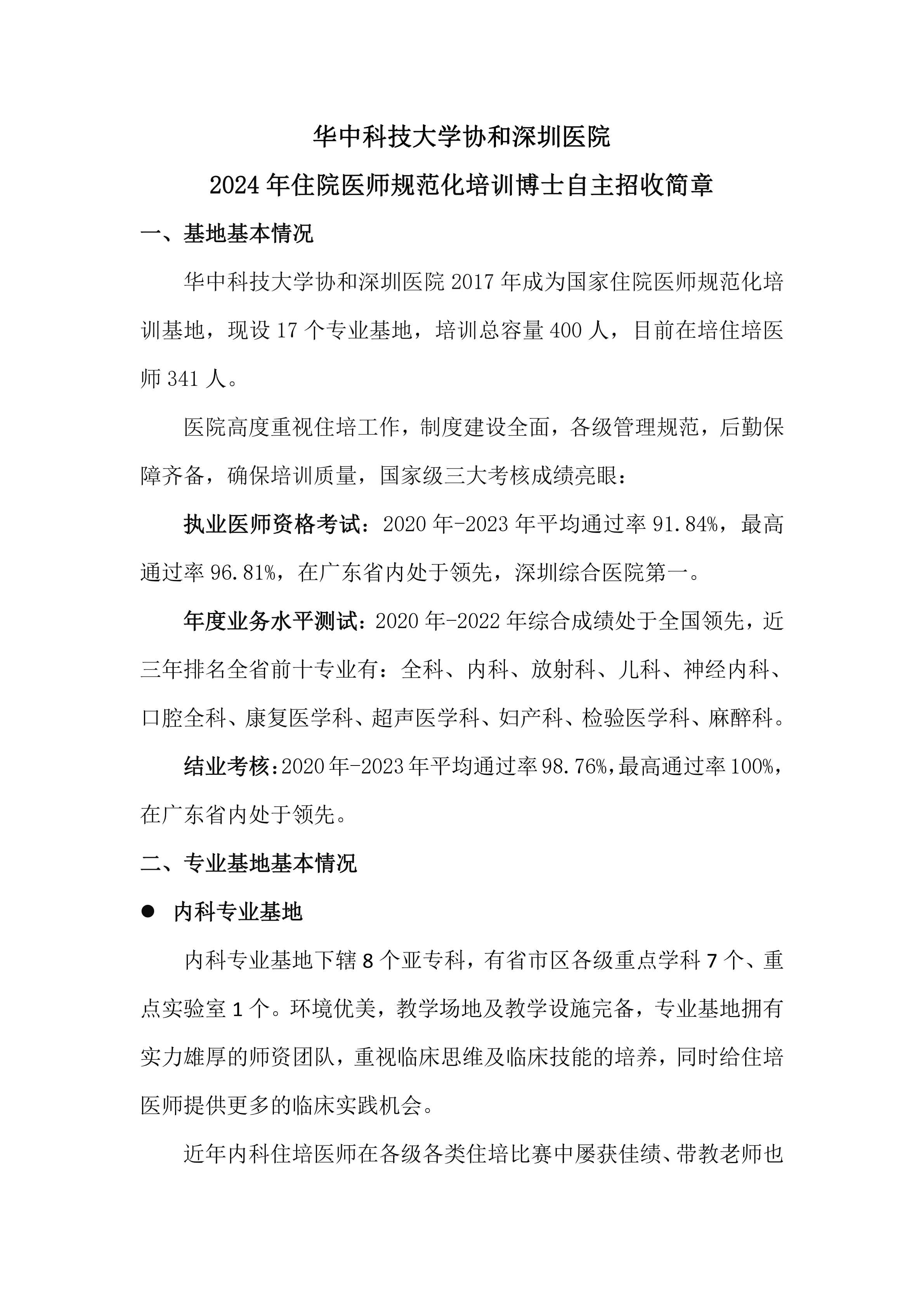 华中科技大学协和深圳医院2024年住院医师规范化培训博士自主招收简章